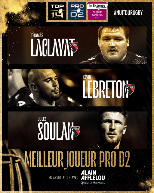 Dans une saison où Oyonnax Rugby a remporté le titre de champion de France de PRO D2, 3 joueurs de l’effectif des Oyonnaxiens ont été sélectionnés pour recevoir le titre de meilleur joueur. Parmi ces joueurs de l’USO, on retrouve Thomas Laclayat ; Kévin Lebreton ; Jules Soulan.