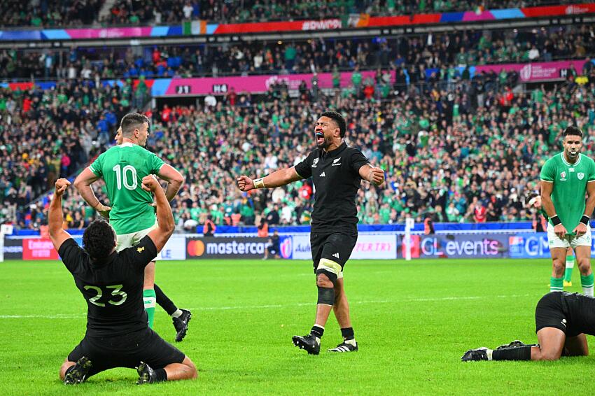 37 temps de jeu pour une libération : 24-28 pour la Nouvelle-Zélande, 77ème minute de jeu, les Irlandais relançaient à la main de leurs 30 mètres. C’était le top départ de la plus longue séquence jamais réalisée dans une Coupe du monde de rugby : 37 phases de jeu. Le record était vieux de 12 ans (« 32 » lors de Pays de Galles - Australie en 2011). Et comme un symbole, c’est le futur deuxième ligne de la Section Paloise, Sam Whitelock, qui voyait son grattage récompensé d’une pénalité et avait le dernier mot. La libération pour les All Blacks qui arrachaient leur ticket pour les demi-finales au terme de cinq interminables minutes de défense acharnée. Chapeau.