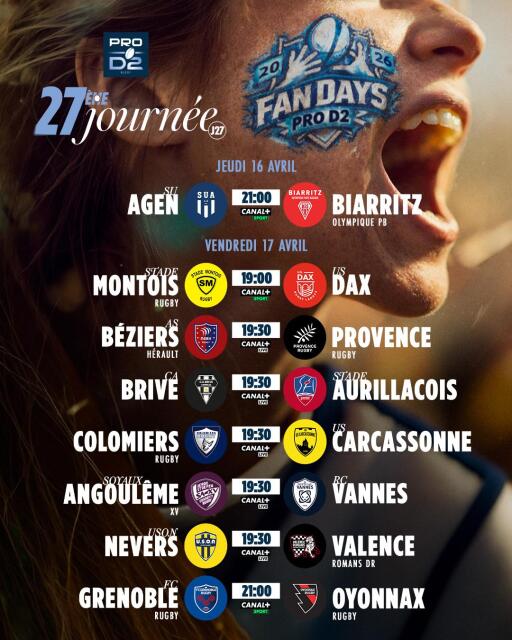 Dans les Landes, en Corrèze ou encore aux pieds des Alpes, les derbys seront nombreux à suivre tout au long de cette 27ème journée. Dans la liste de ces chocs entre voisins, il y a un duel très important à suivre entre le Stade Montois Rugby et l’US Dax pour le maintien et la place de barragiste. Un peu plus haut au classement, il y aura de l’enjeu pour la qualification entre le CA Brive qui veut recoller au podium, et le Stade Aurillacois qui n’a pas dit son dernier mot pour le top six. En Isère, la situation est la même pour le FC Grenoble Rugby, 10ème, qui recevra Oyonnax Rugby, 5ème.