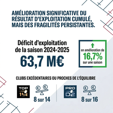Ces résultats économiques confirment la poursuite de la dynamique de croissance des revenus, avec des produits d'exploitation qui atteignent un niveau historique. Cette évolution positive s'accompagne toutefois d'une vigilance maintenue sur la maîtrise des charges et la consolidation des équilibres financiers des clubs.