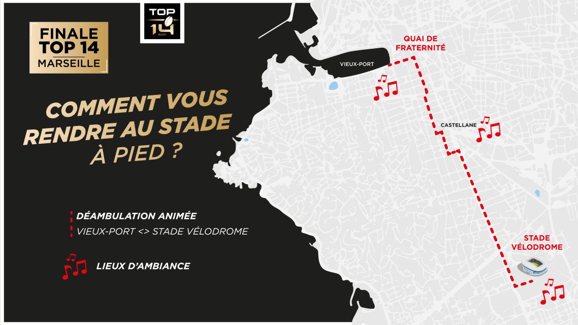 Rendez votre trajet vers le Stade Vélodrome plus agréable grâce à la Fan Walk mise en place par la Ville de Marseille et la LNR. Profitez de la déambulation animée entre le Vieux-Port et le stade grâce à des lieux d'ambiance tout le long du trajet. Le moyen parfait pour une petite balade d'avant-match ! Pratique, animée et écologique !