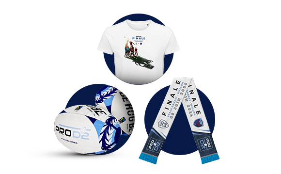 Retrouvez également l'ensemble des produits officiels de la finale de PRO D2 disponible directement sur le parvis : écharpes, t-shirts officiels de la rencontre, ballon de la finale et produits officiels du RC Vannes et du FC Grenoble Rugby !