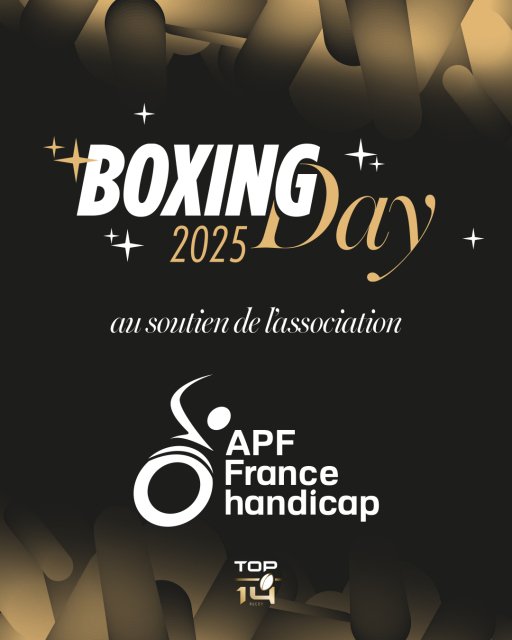 Cette édition 2025 du Boxing Day sera dédiée au soutien de l’association APF France Handicap. Dans ce cadre, l’ensemble des clubs de TOP 14 mèneront des actions solidaires et des collectes de fonds destinées à accompagner les initiatives de l’association, engagée de longue date pour favoriser l’inclusion des personnes en situation de handicap dans la société.