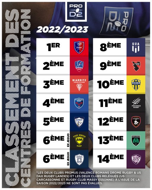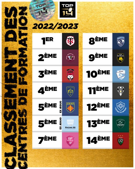 A la suite de l’évaluation de l’activité de la saison 2022/2023 des 28 centres de formation concernés, réalisée par la Commission Formation FFR/LNR, voici le classement pour le TOP 14 et la PRO D2
