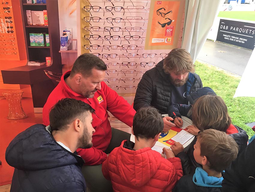 En cette fin de mois d’avril, le Rugby Tour Optique est venu à la rencontre des grands comme des plus jeunes au stade Pascal Laporte de Nantes. Malgré un temps légèrement pluvieux, les jeunes rugbymen en herbe sont venus en nombre profiter des conseils de Christian Califano notre ambassadeur, et les joueurs du Racing Club Vannes Maxime Jadot (International belge) et Pacôme Gougeon (formé au Stade Nantais).