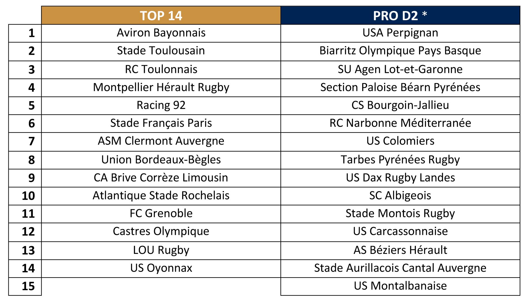 * Hors RC Massy Essonne, promu en PRO D2 en 2014/2015 mais relégué à l’issue de la saison