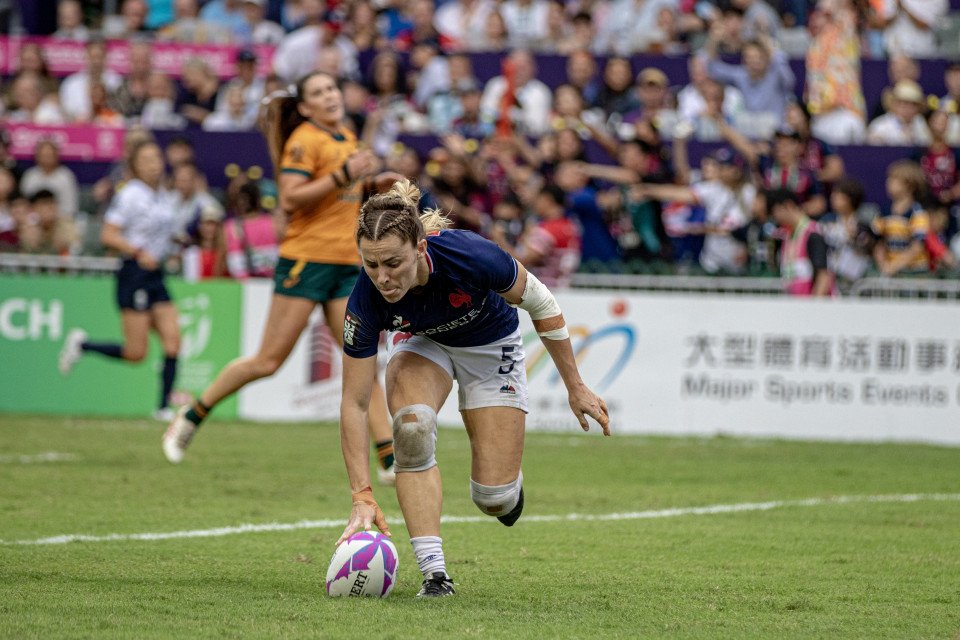 Terminant en tête de la Poule A, les Françaises écartaient ensuite l’Irlande (31-7) pour rejoindre le dernier carré. Mais ce dimanche, la dynamique fut stoppée par une impitoyable équipe américaine. Solides en défense, les États-Unis remportaient la demi-finale sur le score de 19 à 5 et éliminaient les joueuses de David Courteix à la surprise générale. La troisième place allait également échapper aux Bleues. Malgré un score de 21-7 à 5 minutes de la fin et trois essais signés Valentine Lothoz (Stade Rennais), Joanna Grisez (Stade Bordelais) et Chloé Jacquet (LOU Rugby), la victoire finissait par revenir à l’Australie (21-24) portée par un doublé en fin de rencontre de son facteur X : Maddison Levi. Les Tricolores se contentent donc d’une quatrième place et conservent leur place sur le podium du classement général, validant elles aussi leur place pour Madrid. Mention spéciale à Joanna Grisez qui termine dans l’équipe type du tournoi. Il reste désormais une étape avant la grande finale tant attendue : Singapour, du 3 au 5 mai.