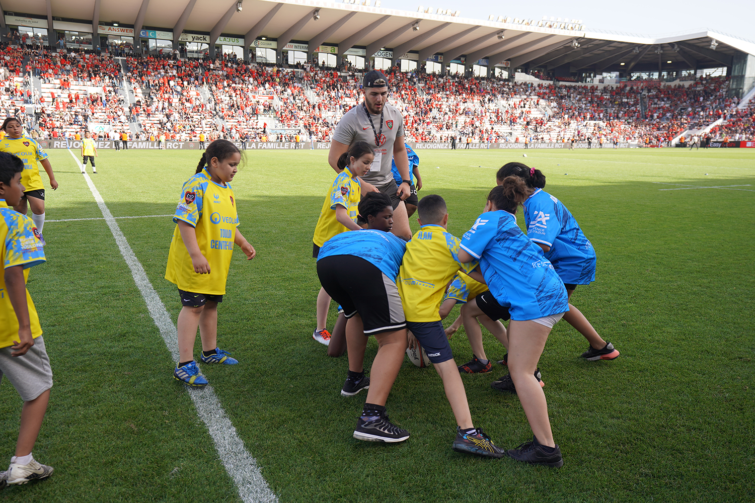 • La transmission des valeurs du rugby, à travers des initiations rugby, au RCT Campus et au sein même des quartiers concernés, prodiguées par les espoirs et encadrées par les joueurs du club. A ces initiations, sont ajoutés des ateliers pédagogiques visant à promouvoir les valeurs du rugby dans le quotidien même de ces jeunes : atelier mixant rugby et tri-sélectif, rugby et civisme dans les transports.
